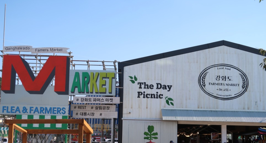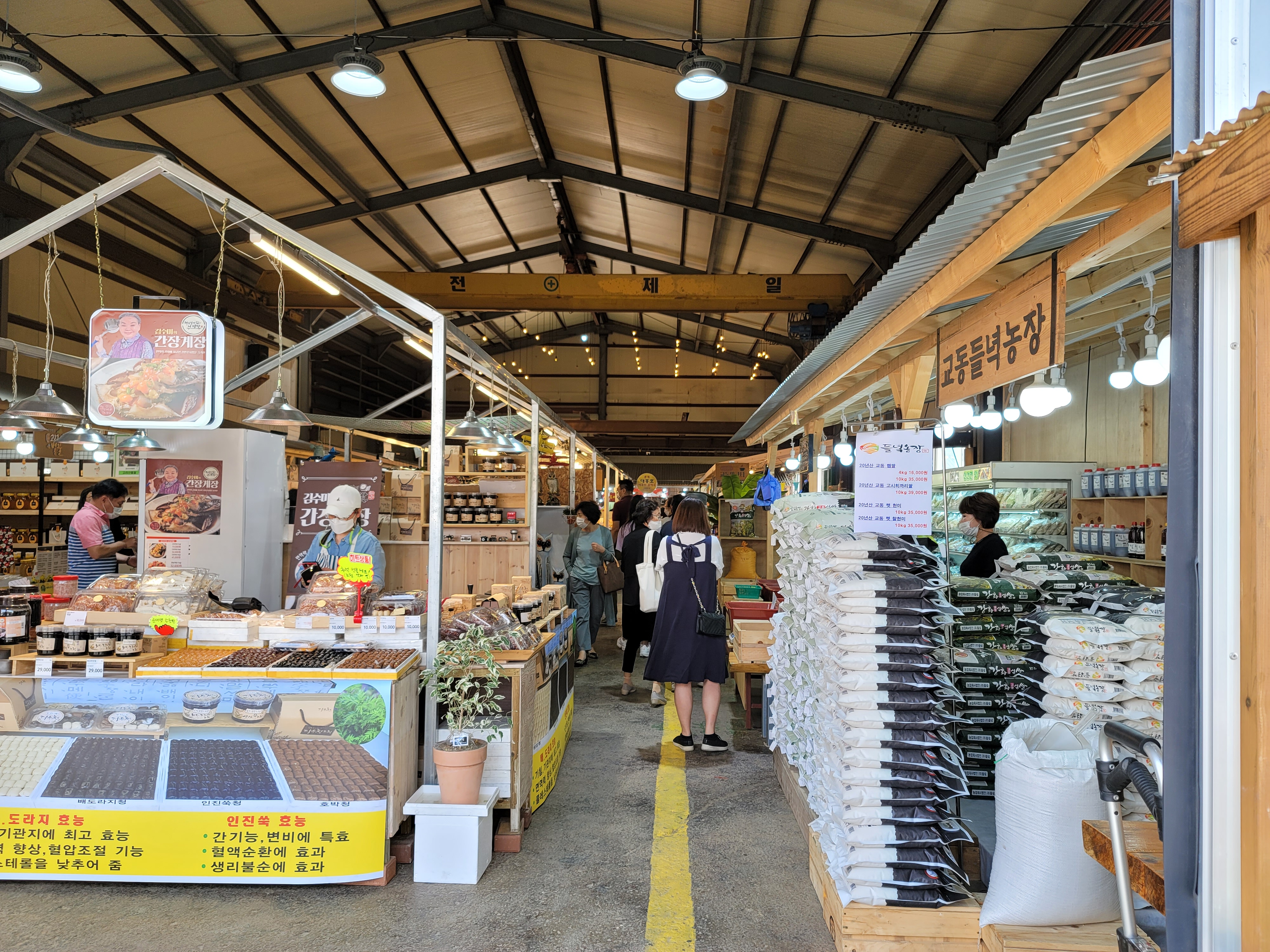 강화도 파머스 마켓이예요. 대룡시장에 오는 사람들이 많으니 이렇게 지역 농산물들을 파는 마켓이 만들어진 것 같아요. 안으로 들어가보면 여러 상점이 나오는데, 크진 않지만 먹거리들이 많아서 구경해볼만했어요. ^^