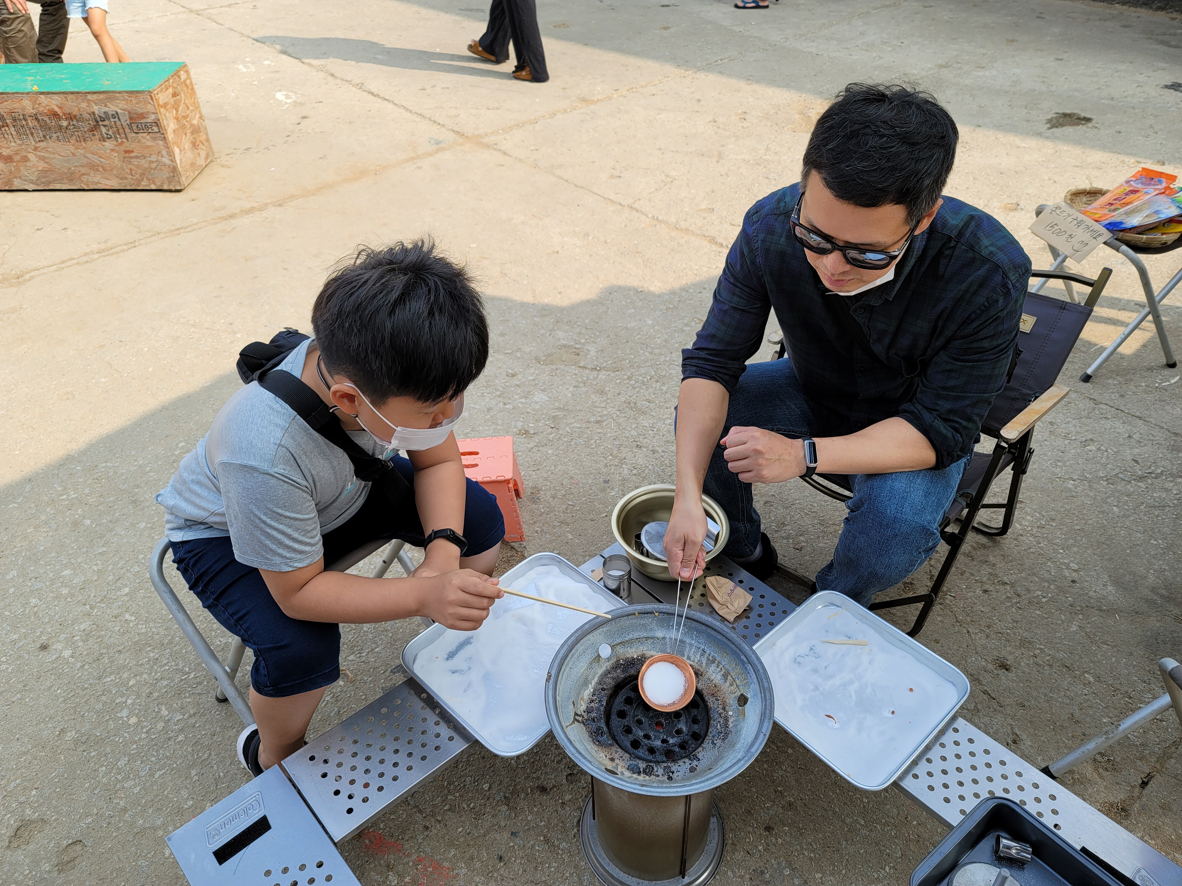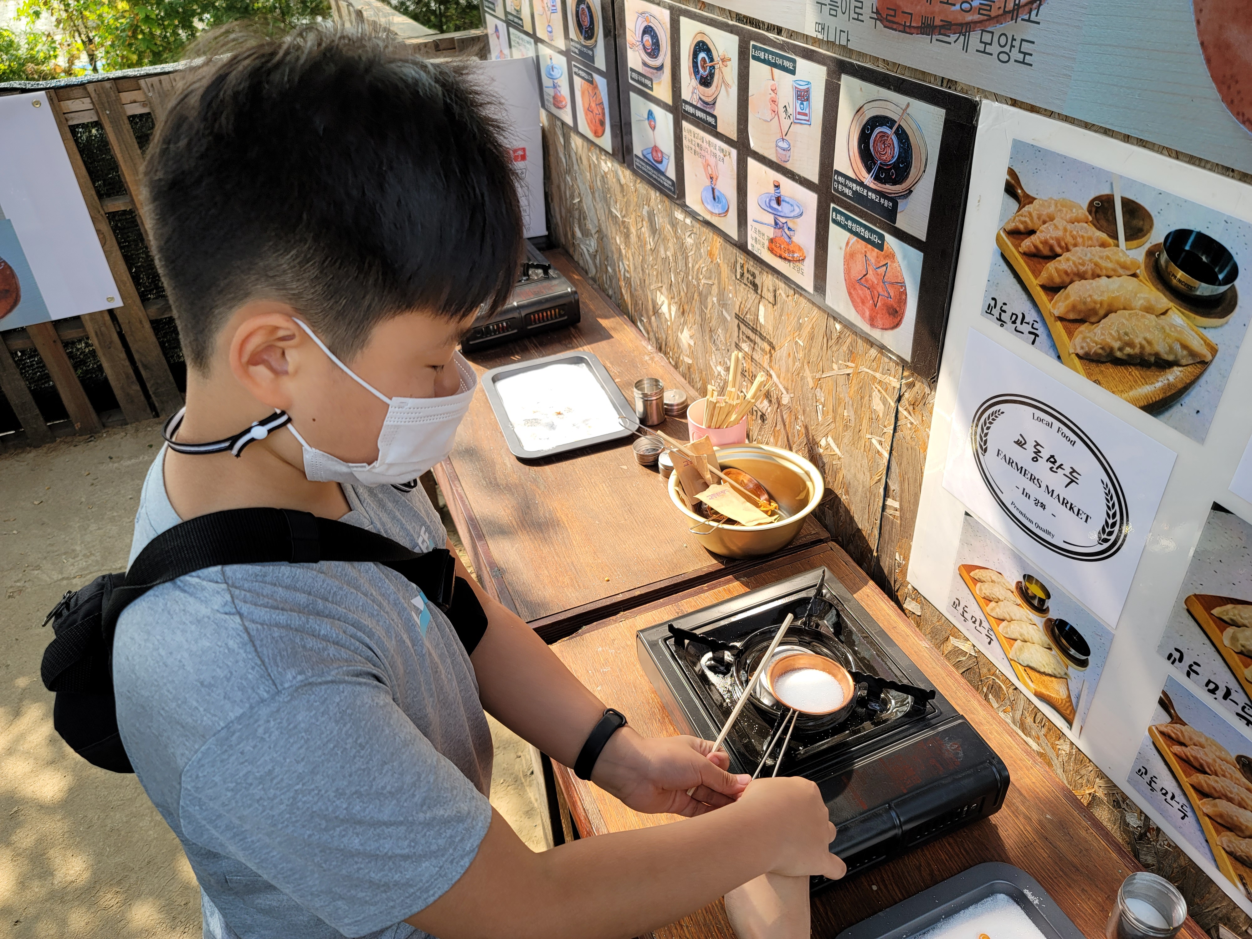 건물 앞쪽으로 이런 추억의 놀이를 할 수 있는 곳도 있어요. 아들이 처음으로 달고나를 만들어보네요 ^^