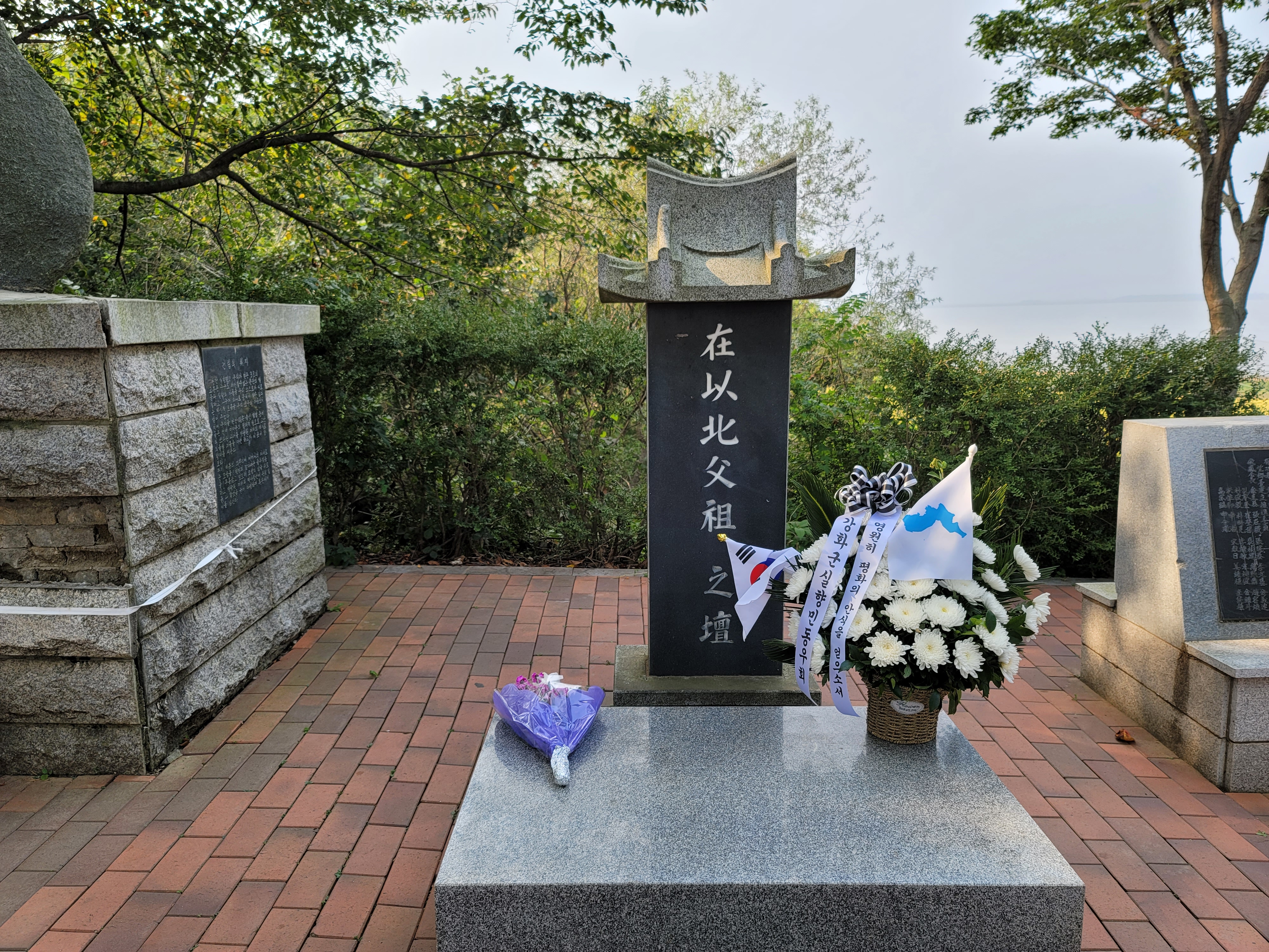 실향민들이 제사를 지내는 비인가 봅니다. 오늘도 누가 다녀가셨는지 꽃이 있어요.