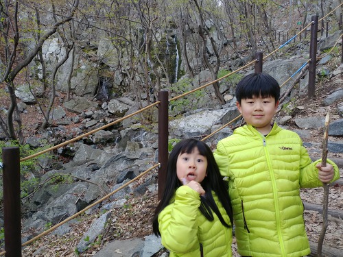 등산로도 잠깐 살펴봤는데, 오서산 등산로는 정말 잘 되어있더라구요. 길 옆에 흐르는 맑은 물소리를 들으며 걸으니 속세의 번뇌를 모두 내려놓는 기분이 들었습니다.(우리 작은애는 사진 찍을때마다 퐈이팅이 넘치네요.)