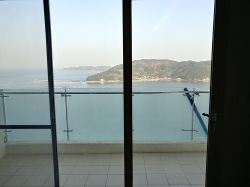 목포에서 3시간을 달려서 드디어 거제도 대명마리나리조트에 도착했습니다. 숙소는 28층 꼭대기층이고 바다뷰입니다.