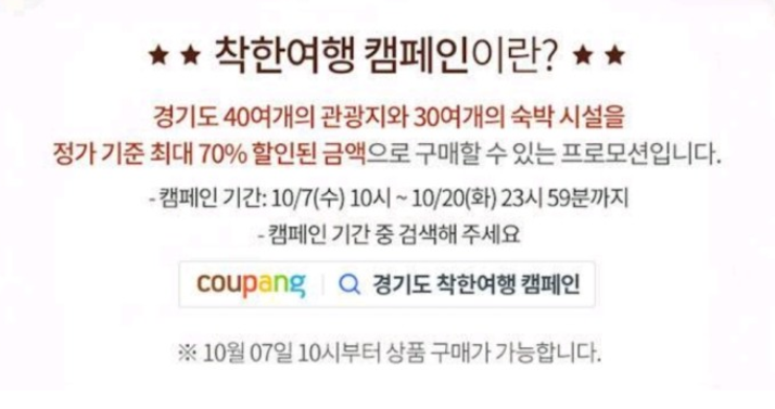 경기도가 50퍼센트 지원하고 협력업체가 20퍼센트 지원해서 총 70퍼센트 할인된 여행상품인데 10월 7일부터 판매가 되었더라구요. 이런 좋은 게 있는 줄 알았으면 저도 여행상품을 많이 샀을텐데 전혀 몰랐어요.