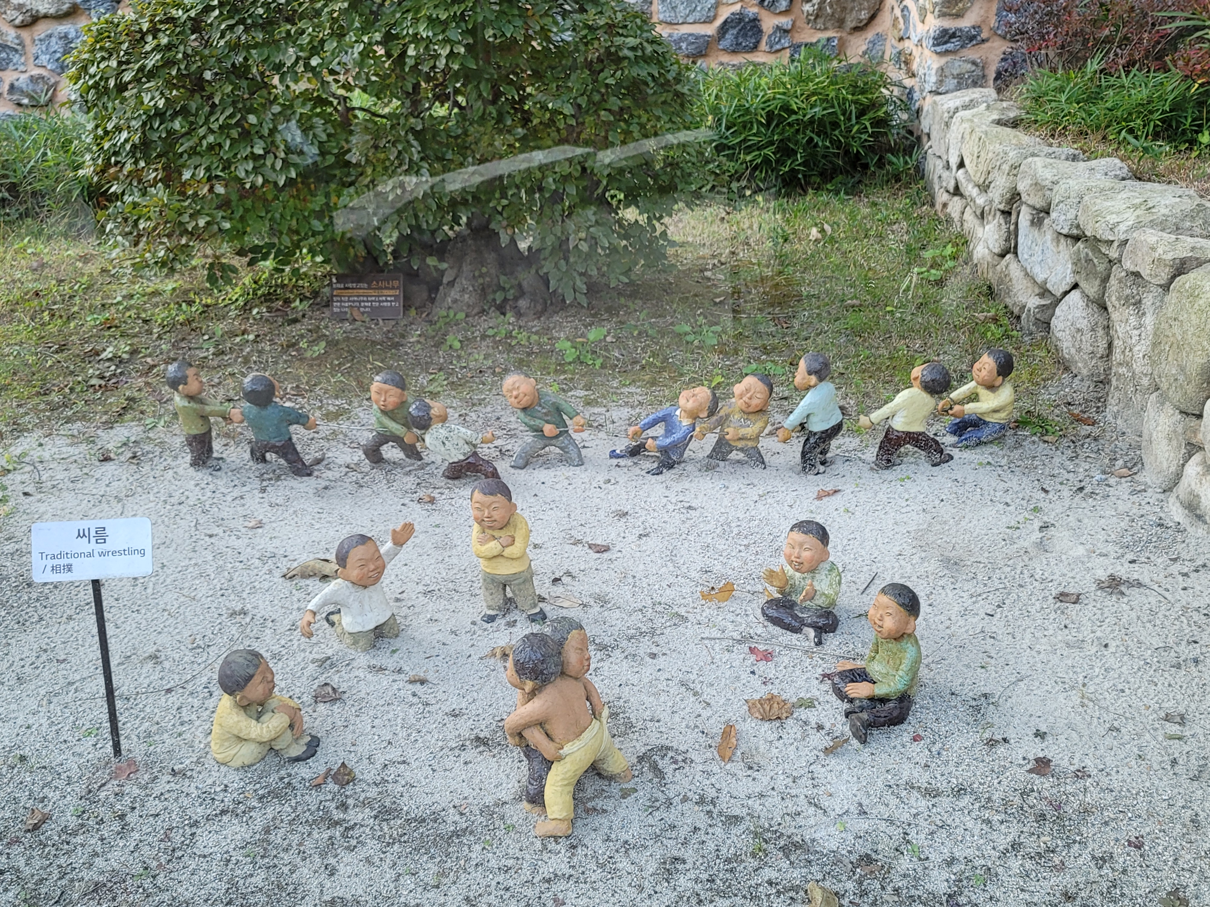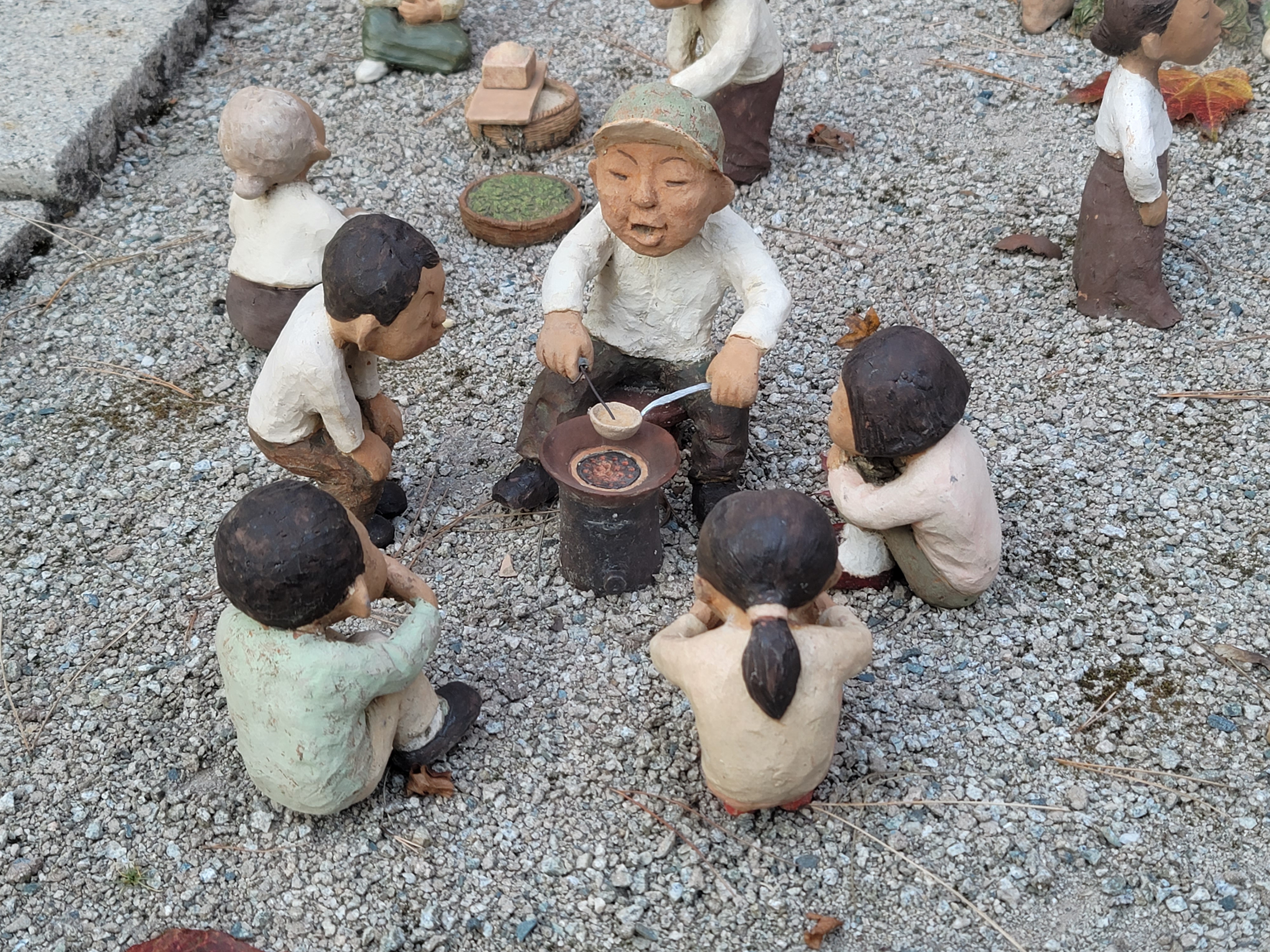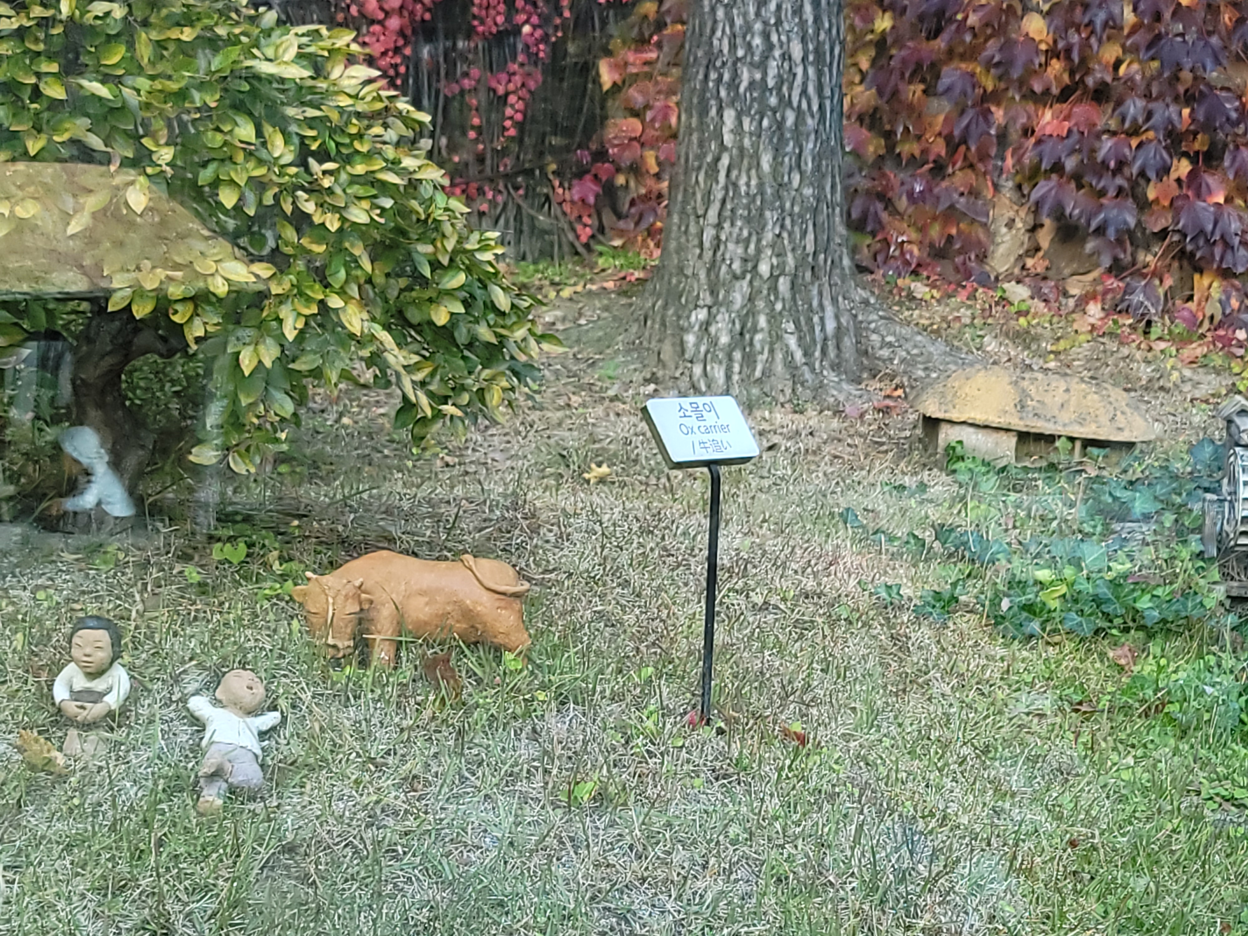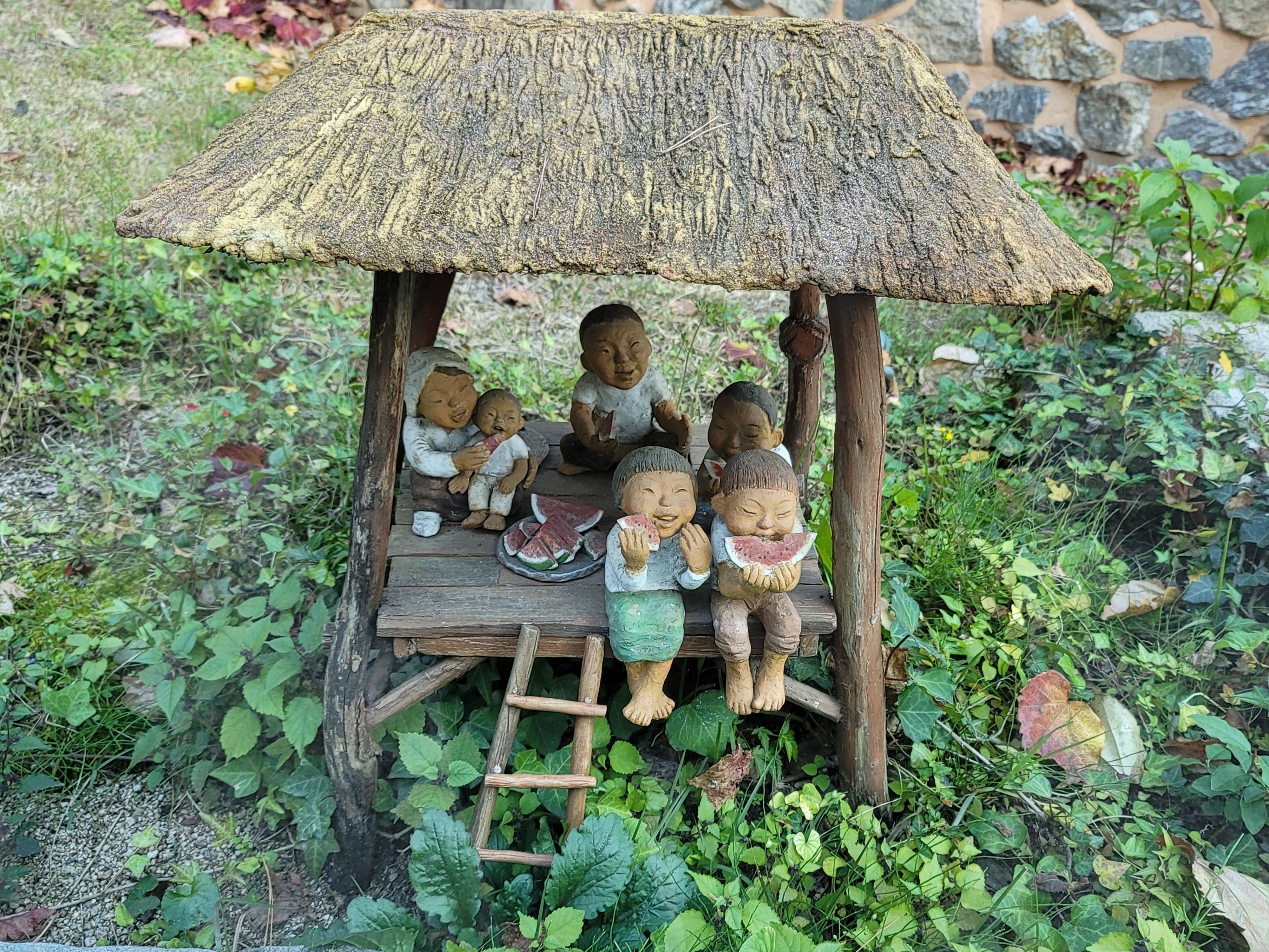 숲 산책길의 마지막 부분인 추억의 정원이 나와요. 예전에는 여기를 그냥 지나쳤었는데 오늘은 잠시 들렀는데 와~닥종이 인형이 넘 실감나고 귀엽네요. 넘 정교해서 사진을 여러장 찍었어요.