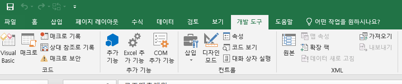 개발도구 메뉴에서 Visual Basic 메뉴로 들어갑니다.