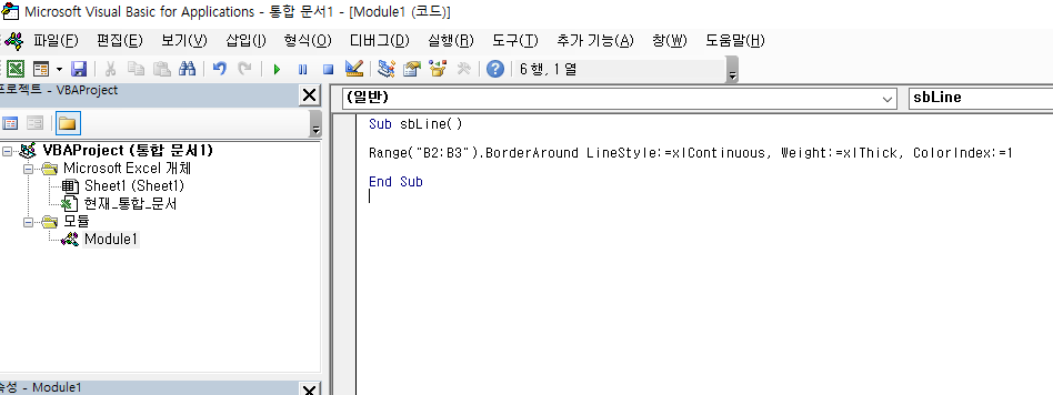 VBA를 사용하여 셀에 선을 그려 보도록 하겠습니다.