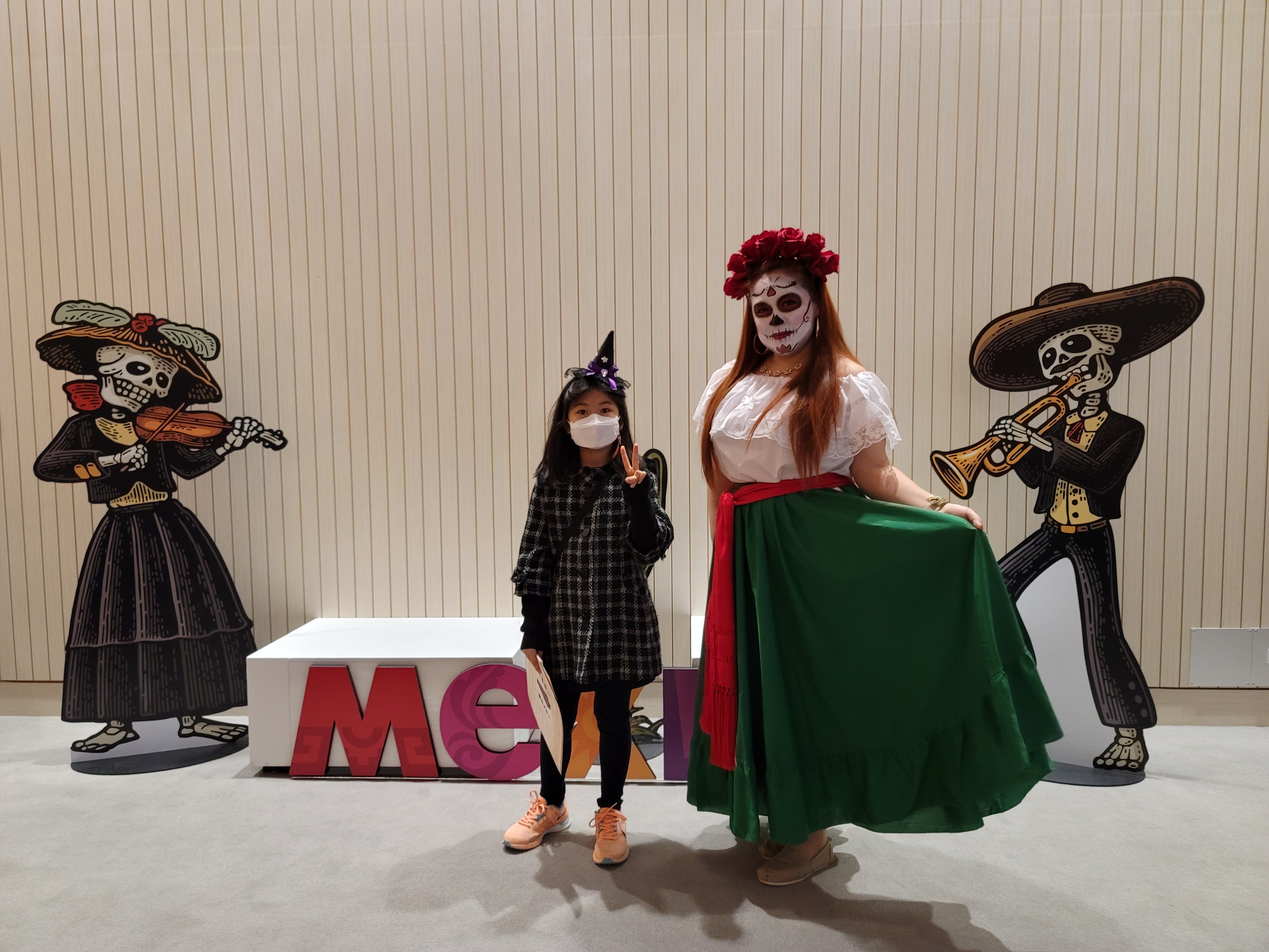 < 멕시코 죽은 자들의 날> 이라는 제목으로 영화 코코가 생각나는 인형들이 입구에 놓여있어요.