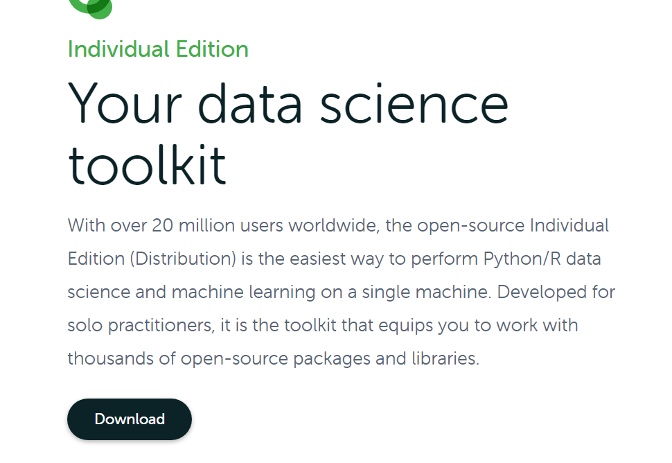 Anaconda's open-source Individual Edition is the easiest way to perform Python/R data science and machine learning on a single machine.