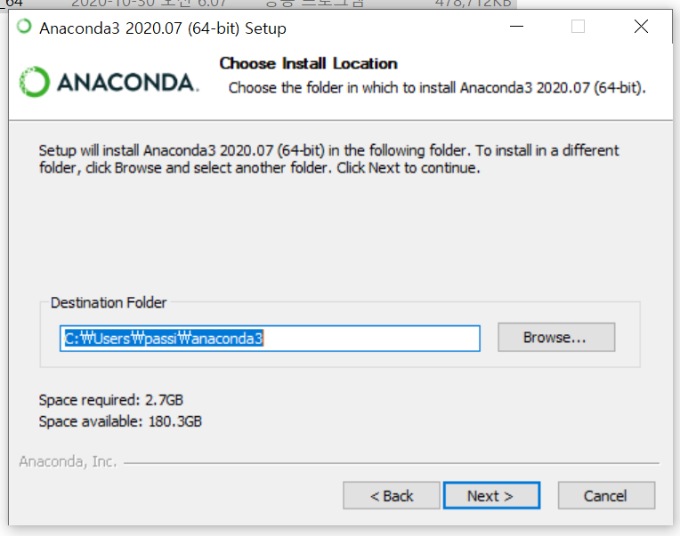 C드라이브에 "Anaconda" 라는 폴더를 만들었습니다.