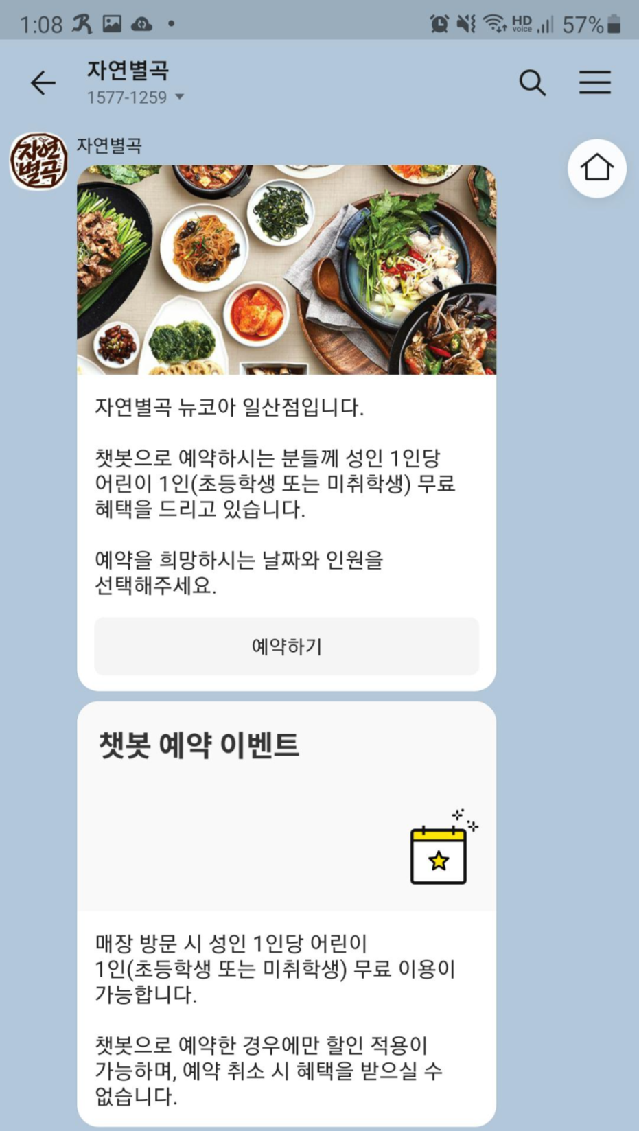 혹시 자연별곡이나 애슐리 가실 일 있으시면 카카오 챗봇으로 꼭 하루 전날 예약하시고 가셔요.