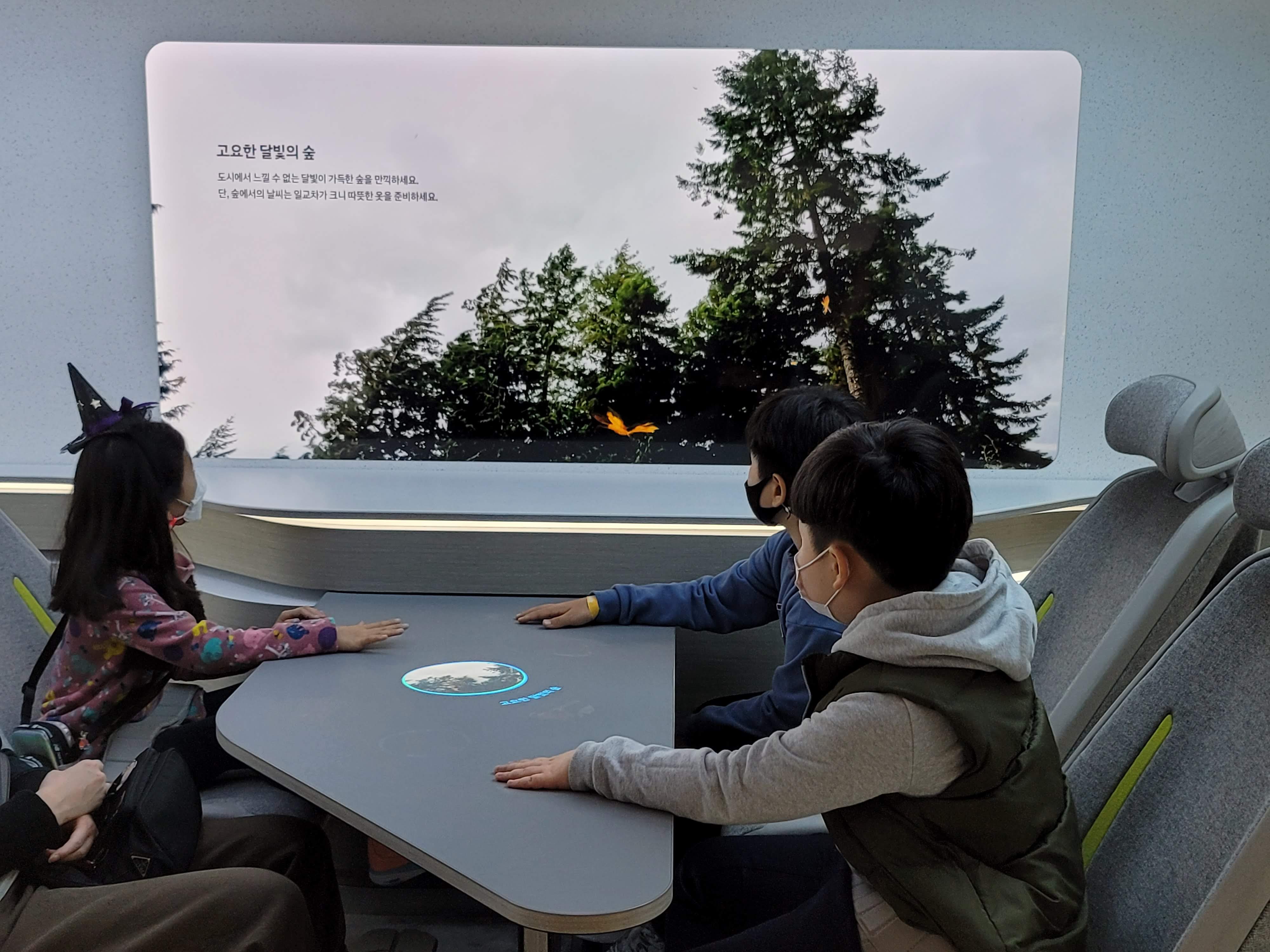 미래 자동차 체험은 자율주행이 현실화 되었을 때의 모습이 구현되어 있습니다.