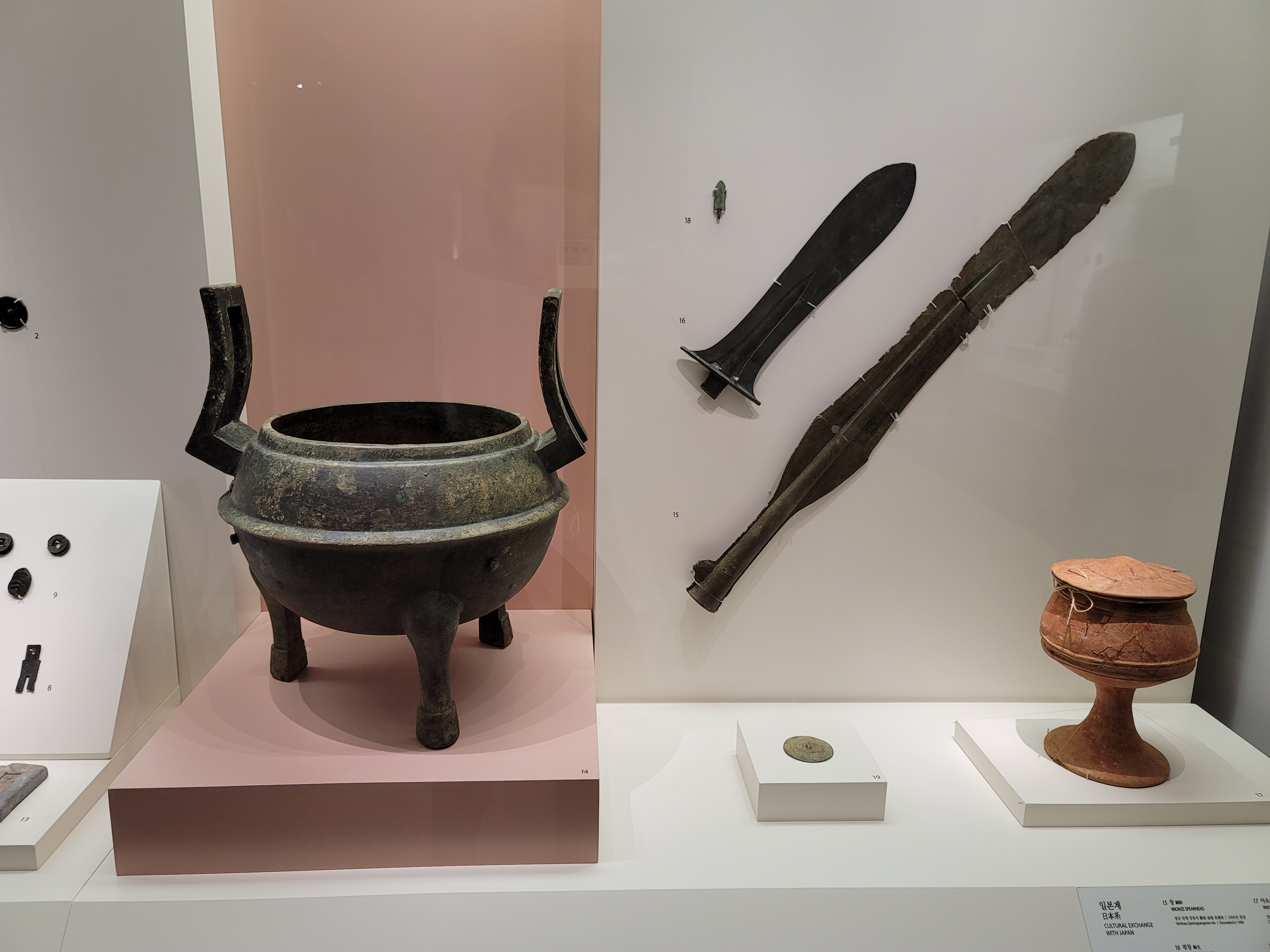 청동 세발솥 : 중국에서만 발견되던 유물이 우리나라에서도 발견되었으니 서로 교류했음을 알 수 있는 자료예요.