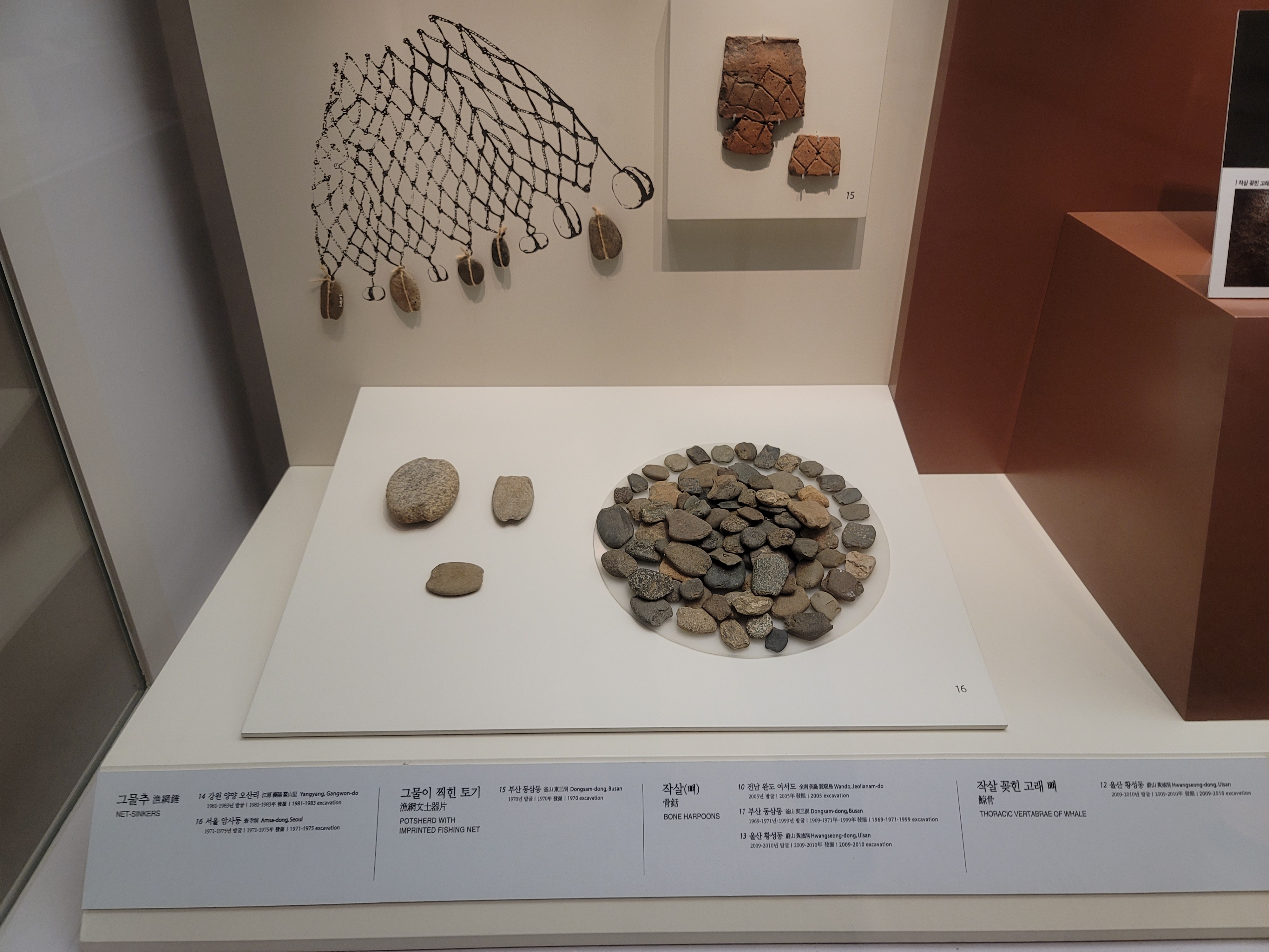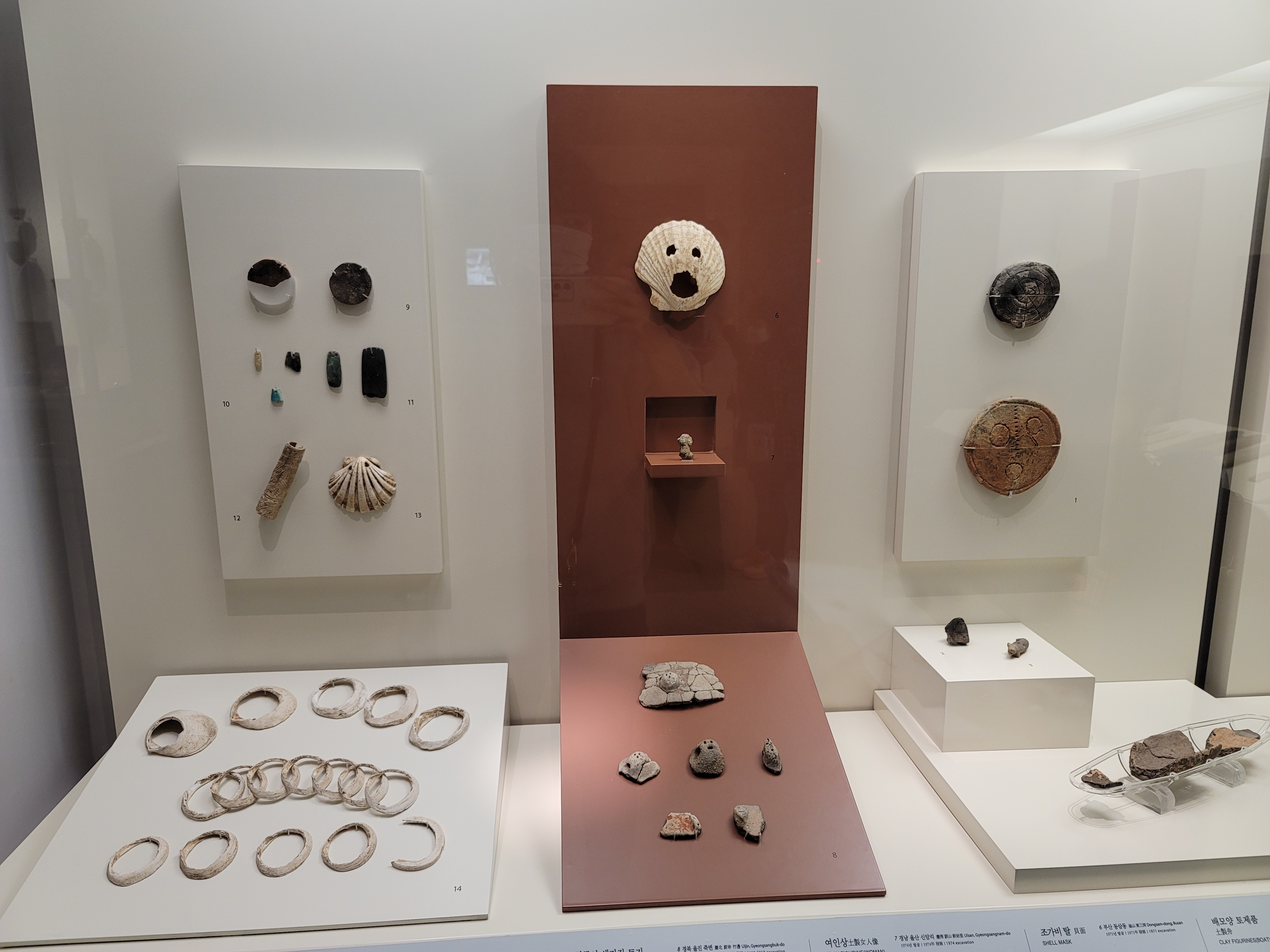 신석기실에는 집터와 무덥, 조개더미 등에서 출토된 각종 유물을 여러 주제로 나누어 전시해요.