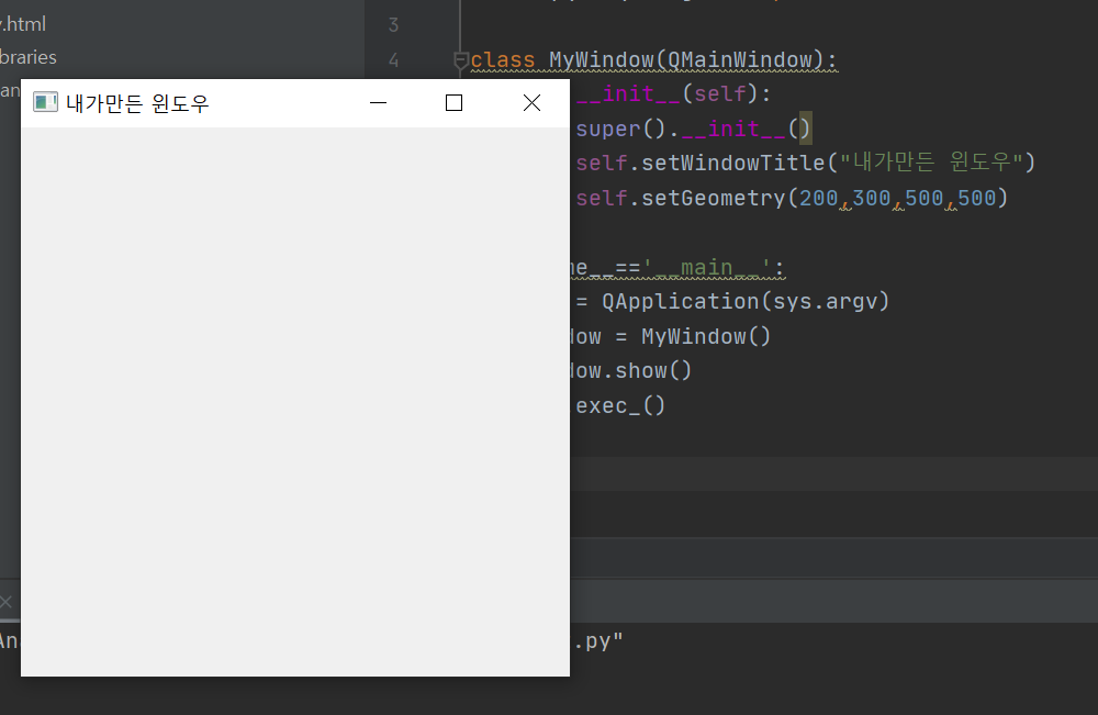 MyWindow라는 이름으로 'QMainWindow'라는 클래스를 상속받는 클래스를 생성 합니다.