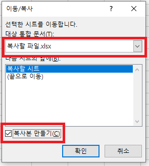복사할 파일의 시트를 남기시려면 "복사본 만들기(C)"를 체크 하시면 됩니다.