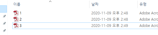 위의 그림과 같이 합쳐진 PDF 파일들이 "Binder"라는 이름으로 합쳐져 있습니다.