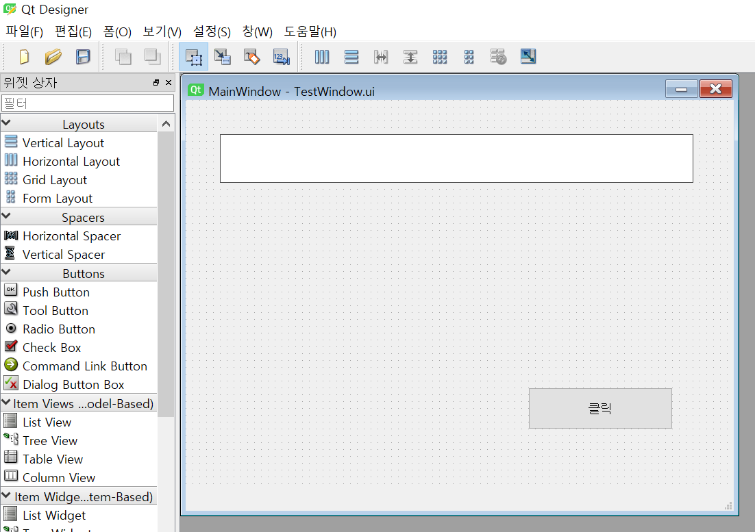 qtdesigner를 이용하여 간단한 윈도우창을 만들겠습니다.