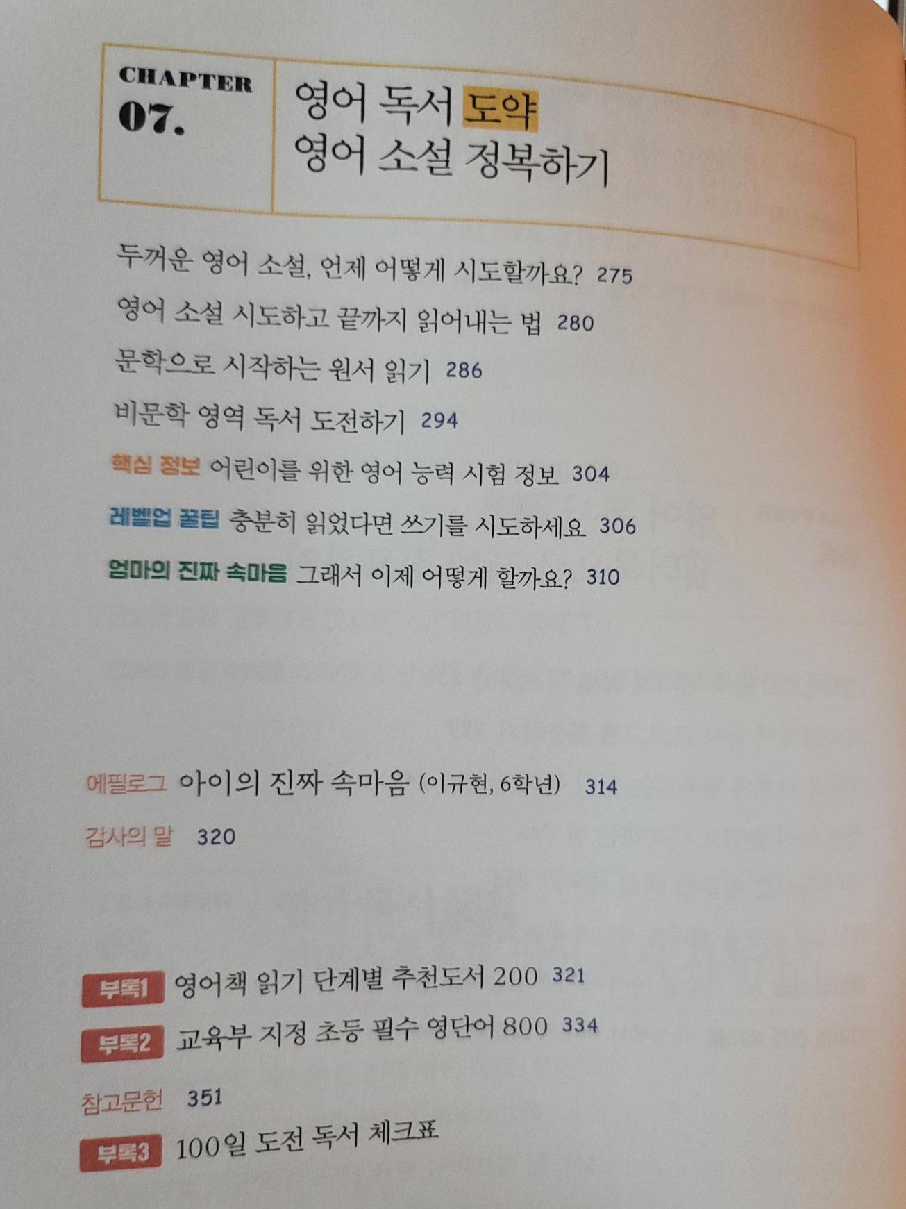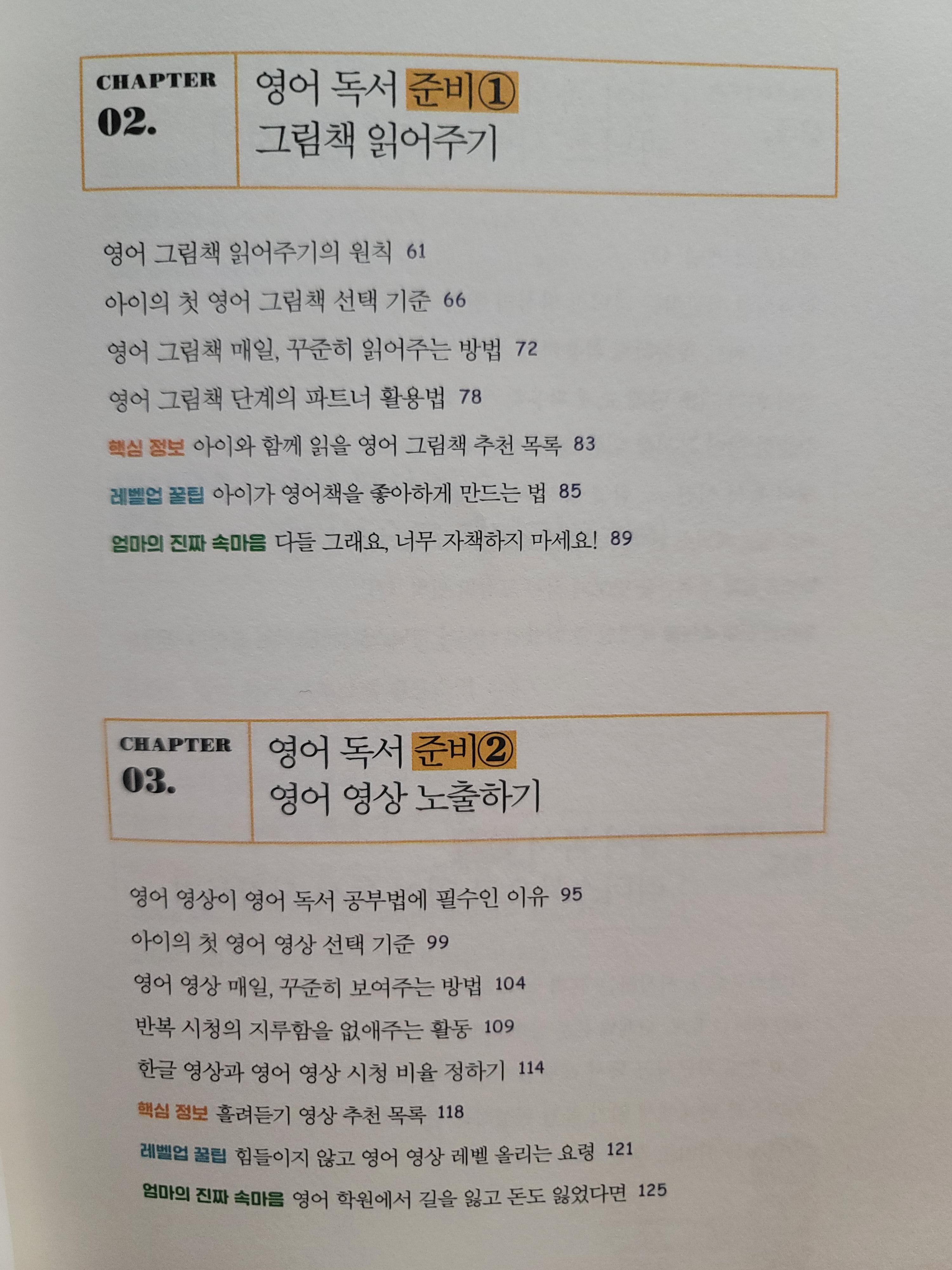작가님 출간 기념 라이브 방송에 잠시 들어갔었는데 이 책을 쓰기 전에 엄마표영어로 진행되는 대부분의 블로그를 다 읽어보셨다 하시더라구요. 자료조사를 철저히 하신 듯했고 본인의 아이 가르친 경험과 어우러져 영어책 읽기를 통한 영어 실력키우기에 대해 논리적으로 잘 정리된 것 같아요.