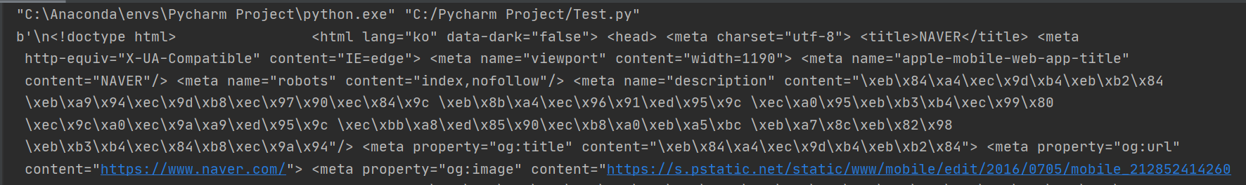 print(res.content) 를 하면, 아래와 같이 결과값이 나옵니다.