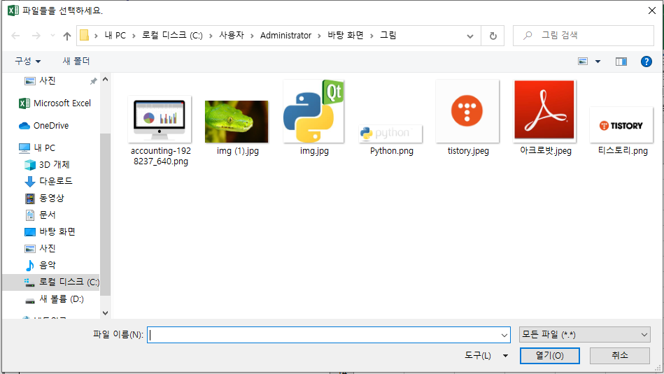 이때 VBA를 사용하면 간단하게 원하는 파일의 모든 이름 또는 경로를 가져올 수 있습니다.