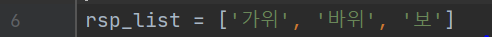 "가위, 바위, 보"는 리스트 형태로 저장하겠습니다.