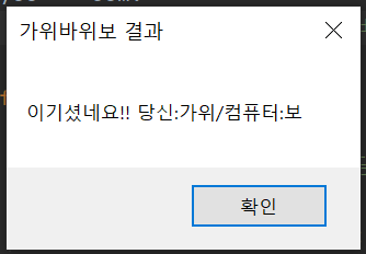 gui.alert('졌네요!! 당신:' + you + '/컴퓨터:' + com, '가위바위보 결과')