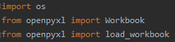 openpyxl 패키지의 'Workbook' 과 'load_workbook'은 각각 엑셀파일 생성과 폴더내의 엑셀파일을 열기위해 필요합니다.