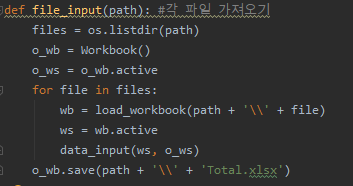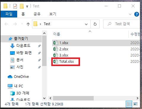 마지막으로 취합된 파일인 'o_wb'는 같은 폴더에 'Total.xlsx'라는 이름으로 저장해 줍니다.