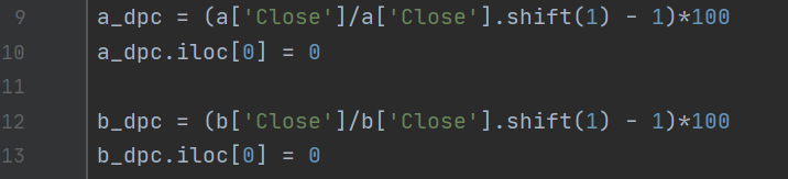 a_dpc = (a['Close']/a['Close'].shift(1) - 1)*100