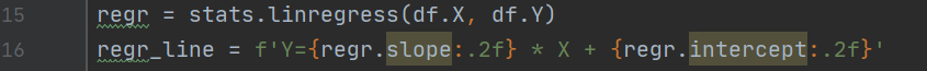 regr_line = f'Y={regr.slope:.2f} * X + {regr.intercept:.2f}'