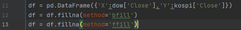데이터가 빈 곳은 뒤의 데이터나 앞의 데이터로 채웁니다.