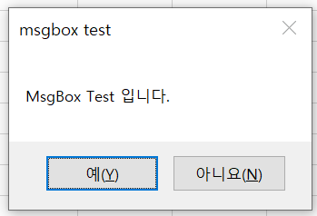 버튼을 'vbYesNo 로 바꾸면 아래와 같이 버튼이 바뀝니다.
