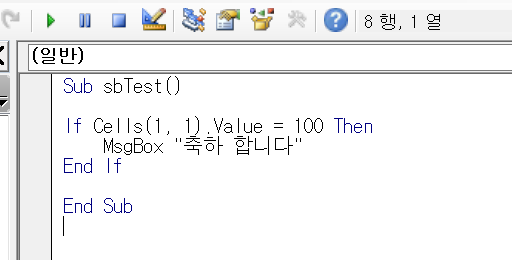 If 조건문은 기본적으로 IF를 입력하고 뒤에 해당조건을 입력한 뒤 Then 까지 같은 줄에 적습니다.