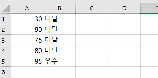90 이상일때는 "우수"라고 표시되고, "70"이상 일때는 "보통" , 그 외에는 "미달"로 표시하게 만들었습니다.