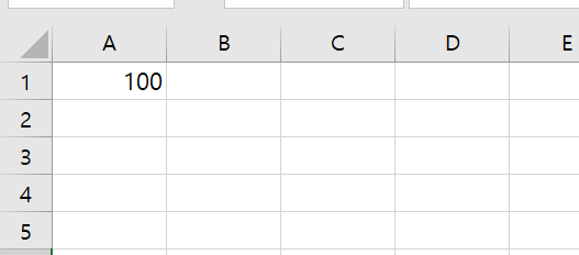 그리고 엑셀 시트의 "A1" 셀에 100이라고 입력 합니다.