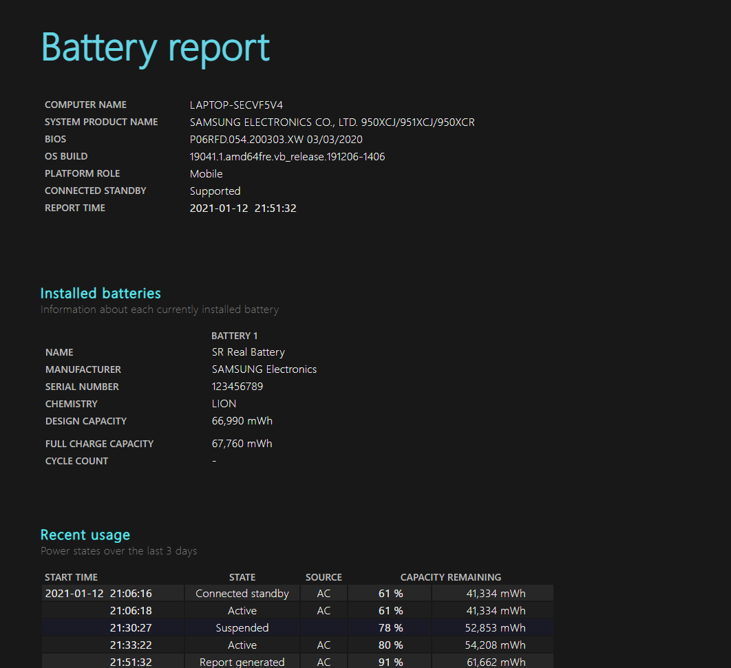 그리고 "powercfg /batteryreport"를 타이핑하고 엔터를 누릅니다.