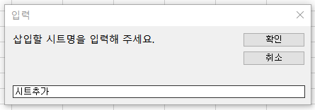 '시트추가'라고 입력한 다음에 확인버튼을 눌러 줍니다.