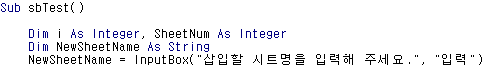 NewSheetName = InputBox("삽입할 시트명을 입력해 주세요.", "입력")