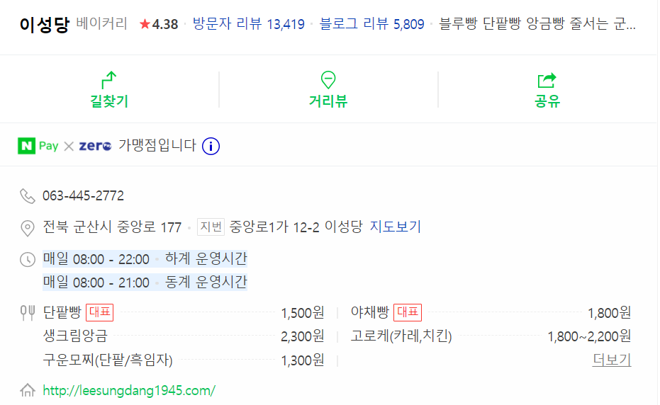 - 대표 메뉴 : 단팥빵, 야채빵