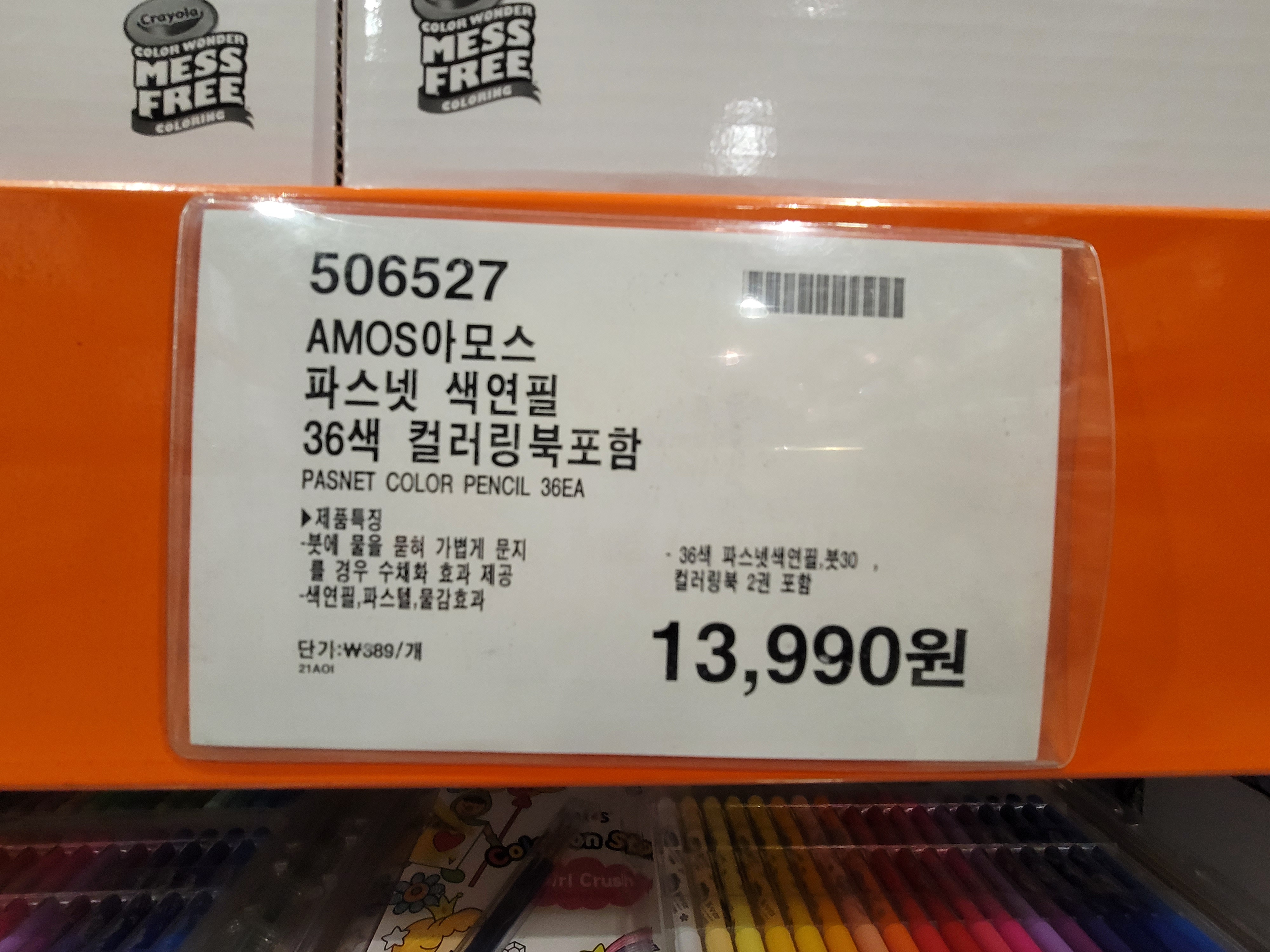 AMOS 아모스 파스넷 색연필 36색 컬리링북포함. 13990원