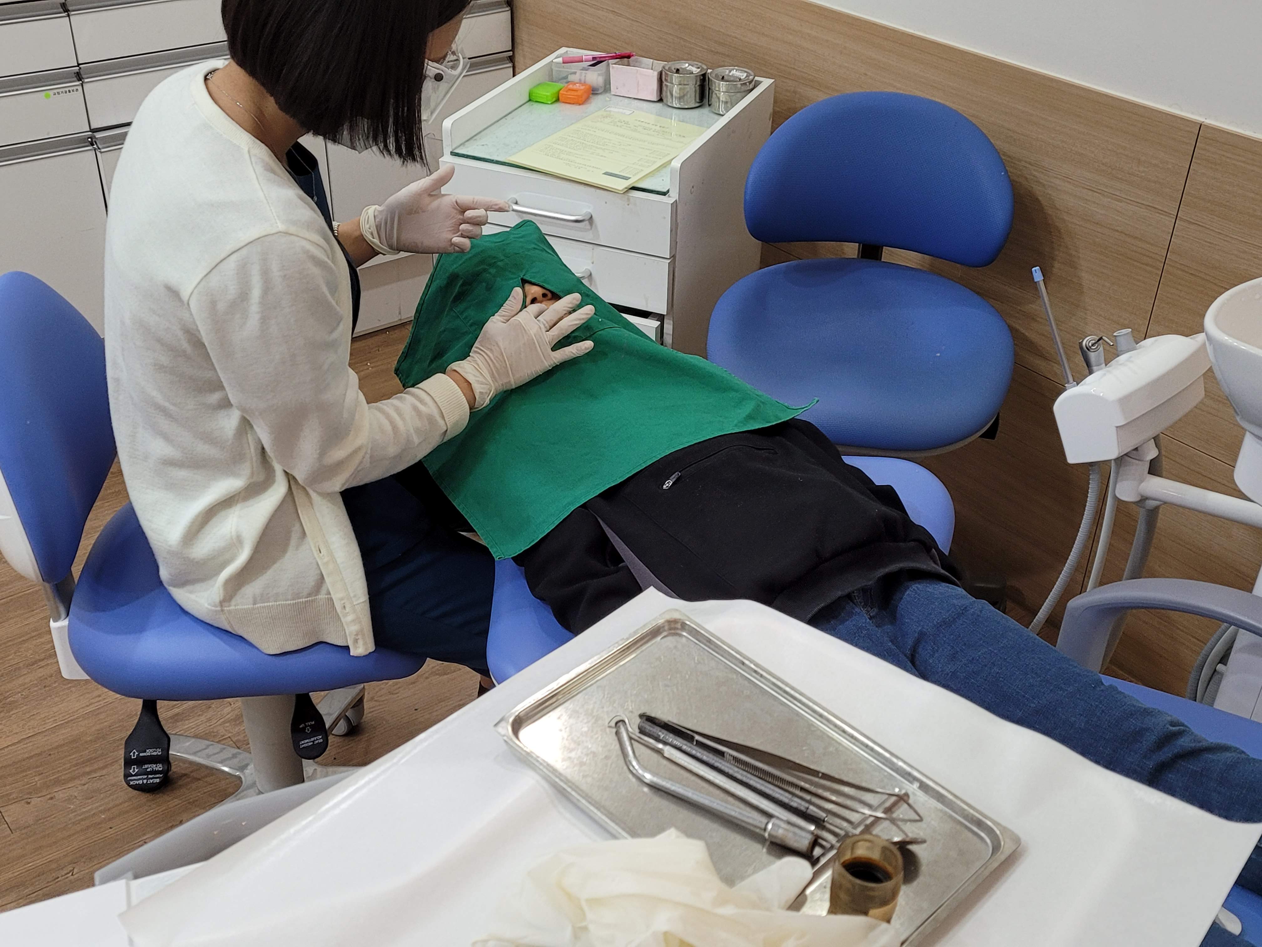 다시 진료의자로 온 후 누워서 세척을 꼼꼼히 해 주시네요.