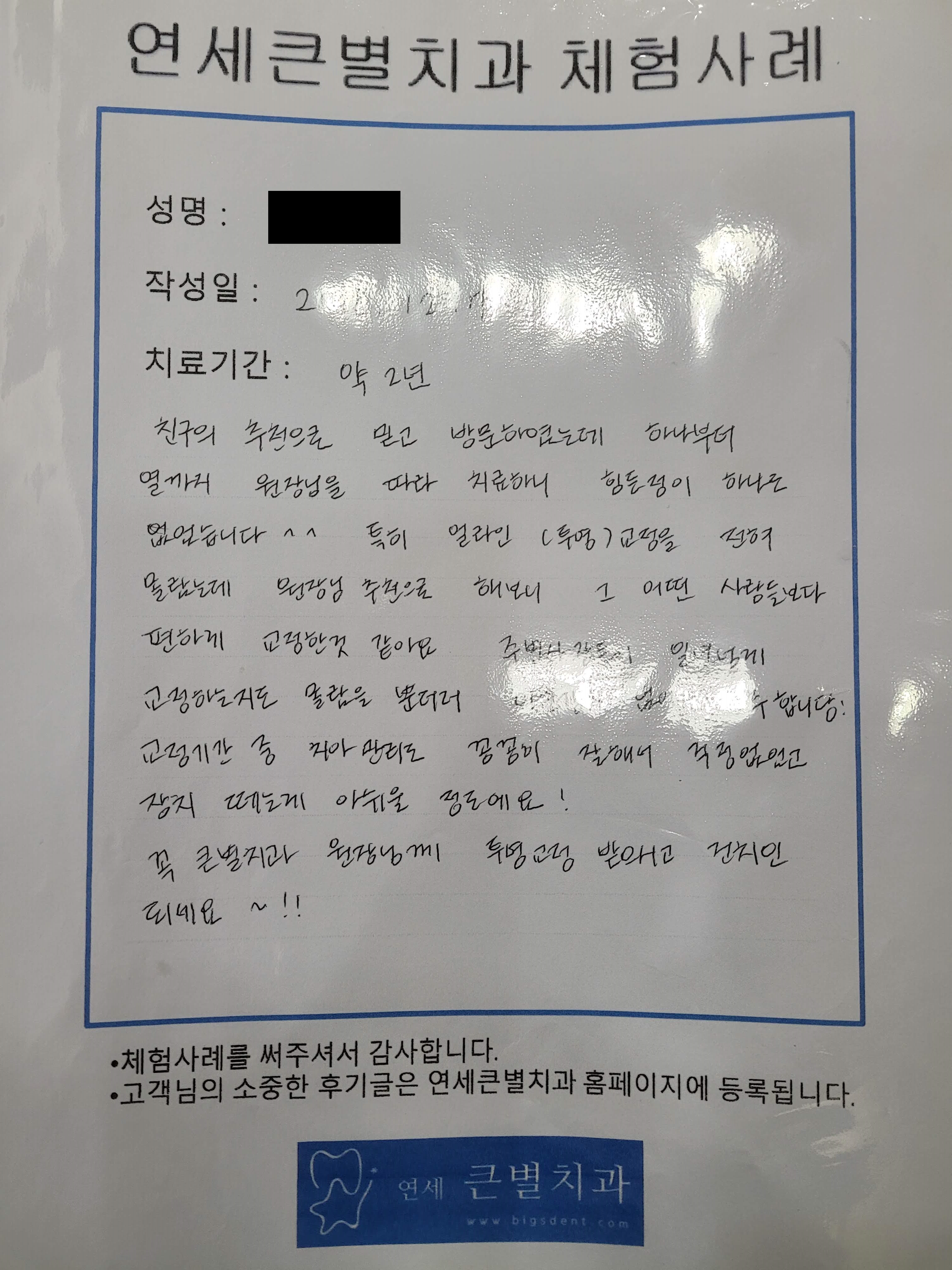 사람들이 직접 자필로 교정치료후기를 쓴 것도 모아놓았네요.
