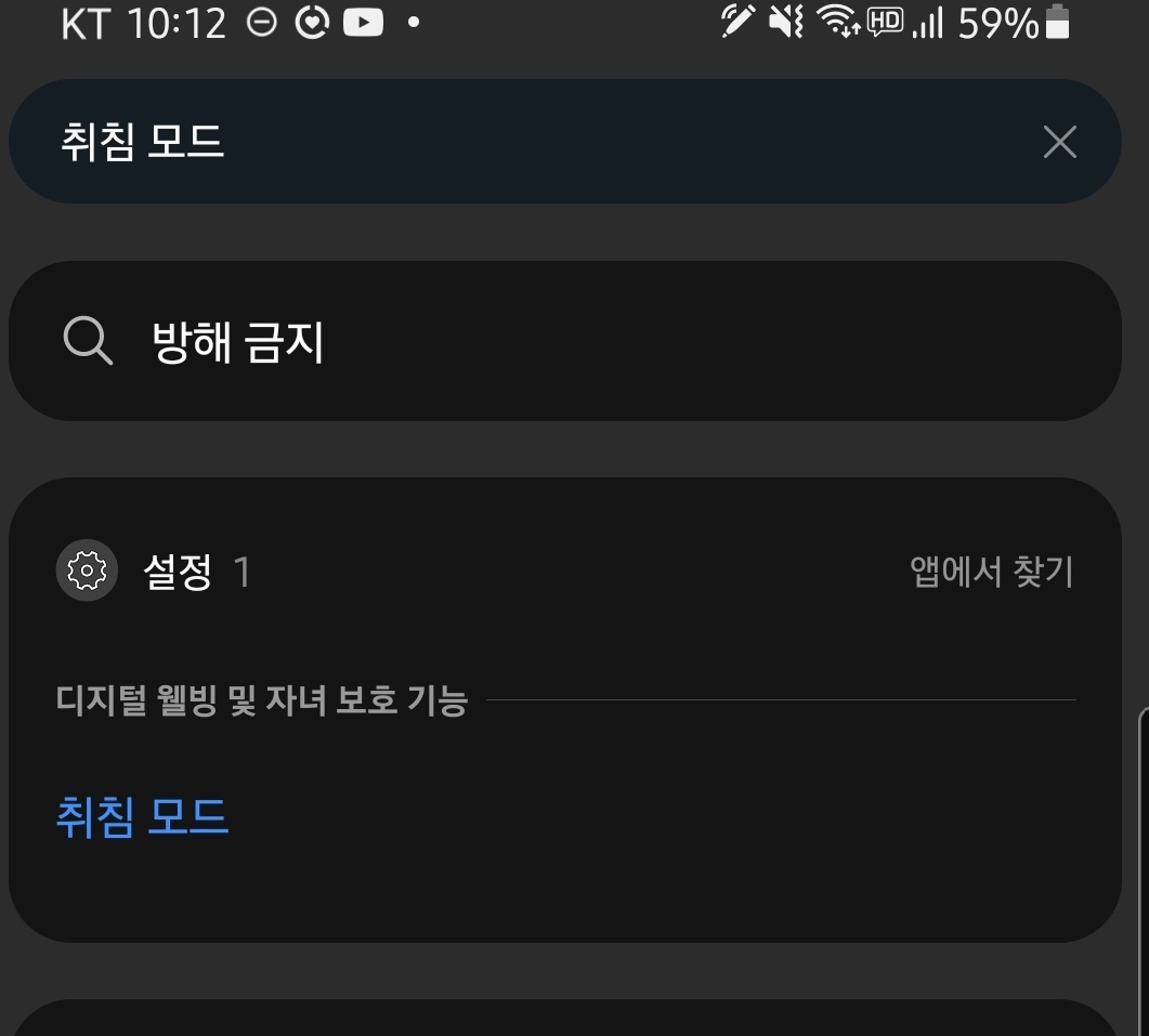 설정에 들어가셔서 검색창에 "취침모드"라고 입력합니다.
