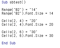 'Font.Size = 14' 이런 방법으로 변경하면 됩니다.