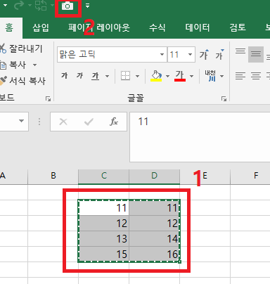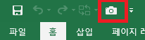 엑셀 메뉴 상단에 카메라 모양이 추가 된 것을 확인할 수 있습니다.
