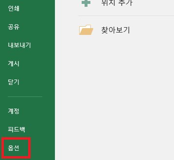 왼쪽 메뉴 중 맨 아래에 '옵션'을 클릭합니다.