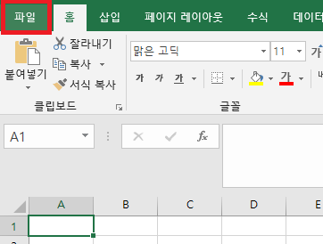 엑셀의 상단 왼쪽 메뉴에서 '파일'을 클릭합니다.