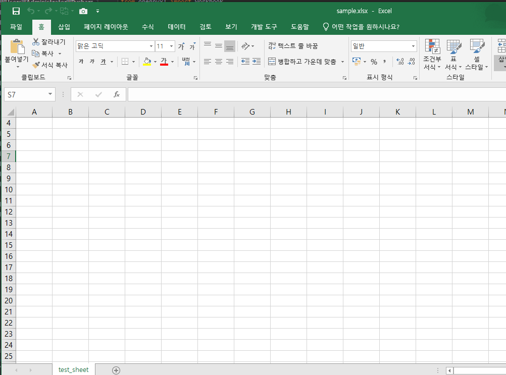 시트 이름도 'test_sheet'로 변경 된 것을 확인할 수 있습니다.