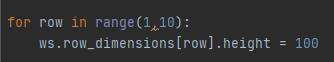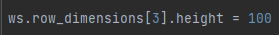 행 높이를 변경하려면 worksheet function에서 'row_dimensions.height'를 쓰면 됩니다.