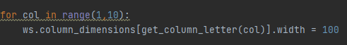 아쉬운 건 VBA에서는 range를 써서 여러 행이나 열의 크기를 변경할 수 있지만, 파이썬에서는 for 문을 써서 변경해야 하네요.