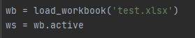 저는 임의로 엑셀파일을 만들어서 가져온 다음에 활성화 된 시트를 'ws'라는 변수에 담았습니다.
